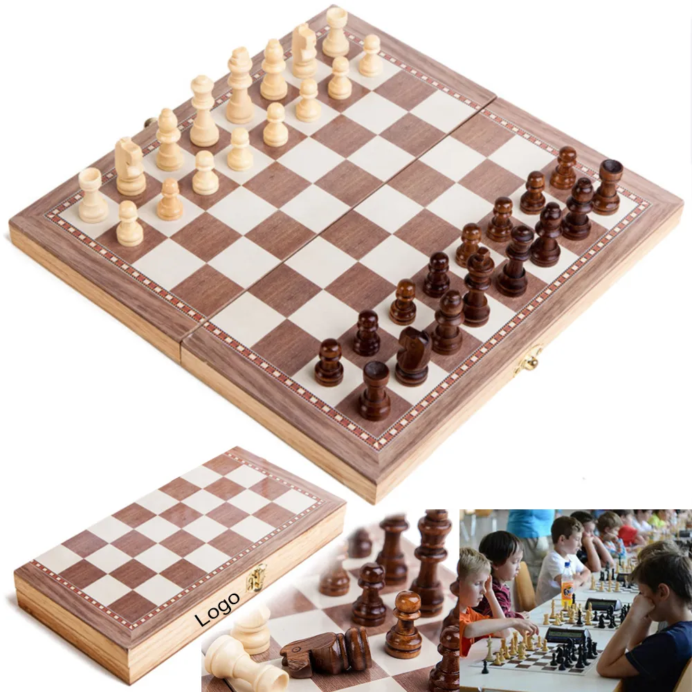 Folding Wooden Chess Checkers Set