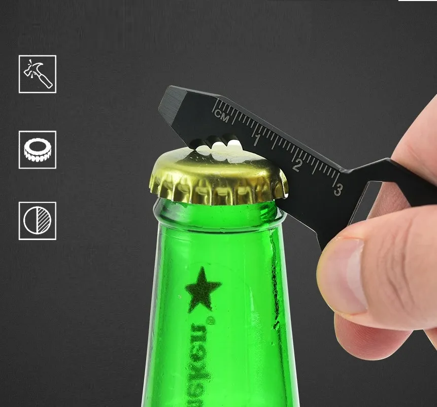 Stainless steel fadeless multi-function card type outdoor tool key chain. Multi-purpose, easy to carry.